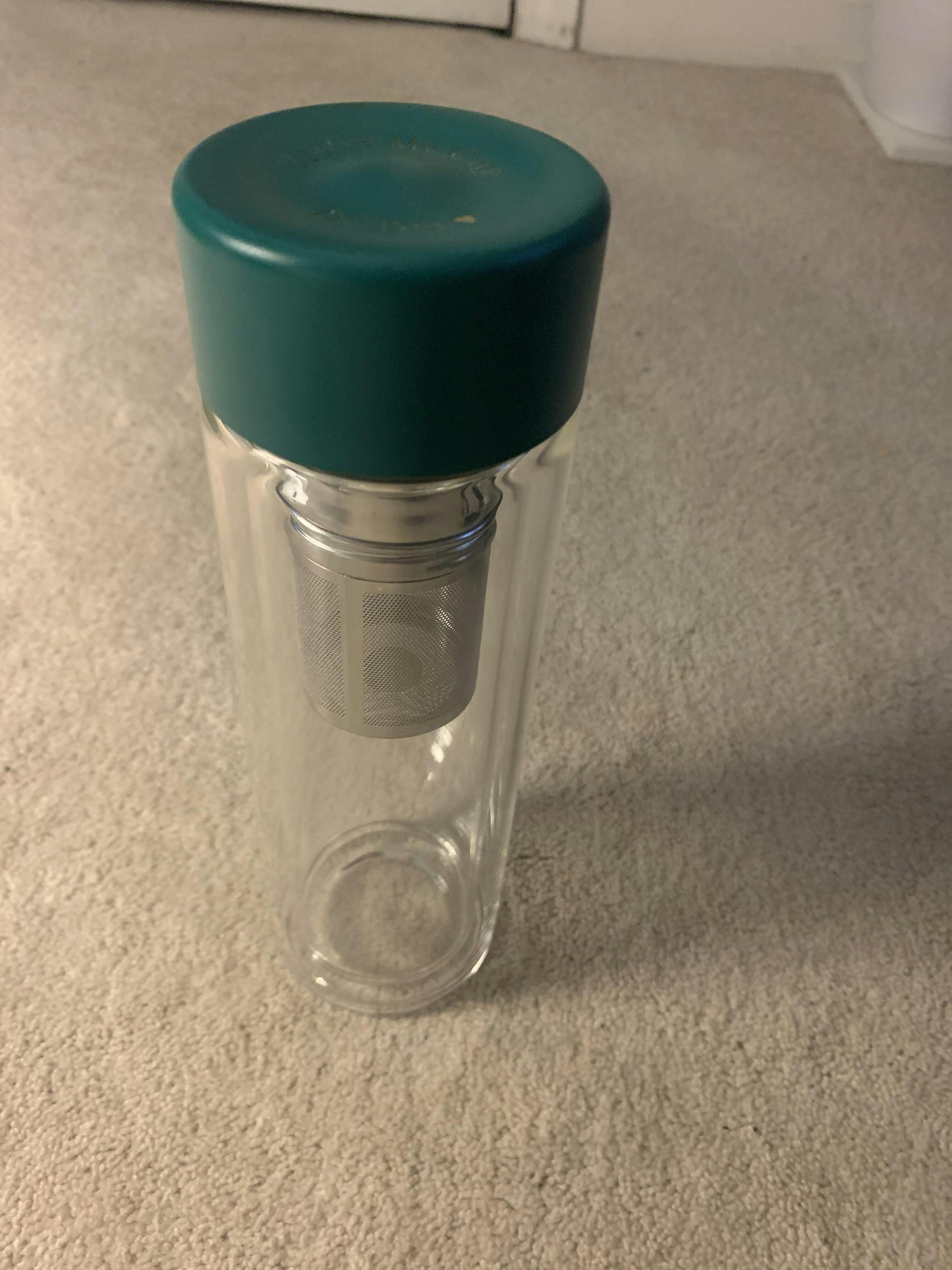 The perfect desk companion for water or tea, this award-winning double wall glass bottle comes with a tea infuser accessory . Made from high-quality borosilicate glass able to withstand thermal shock. Make it unique with art or custom engraving. Glass is breakable and must be handled with care.